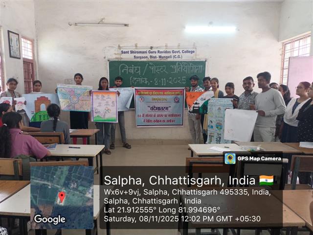 वंदे मातरम राष्ट्रीय गीत की 150 वी वर्षगांठ के उपलक्ष्य मे पोस्टर एवम निबंध प्रतियोगिता का आयोजन